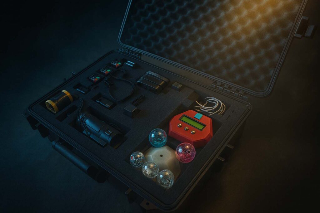 - EMF-målere – Bruges til at registrere elektromagnetiske felter, som kan indikere aktivitet.